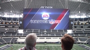 US-Showmaster Conan O'Brien spielt einige Videospiele wie Street Fighter II, Need for Speed: Rivals oder Flower auf einem 2100-Zoll (!!!) großen Videowürfel im AT&T-Stadium in Dallas.