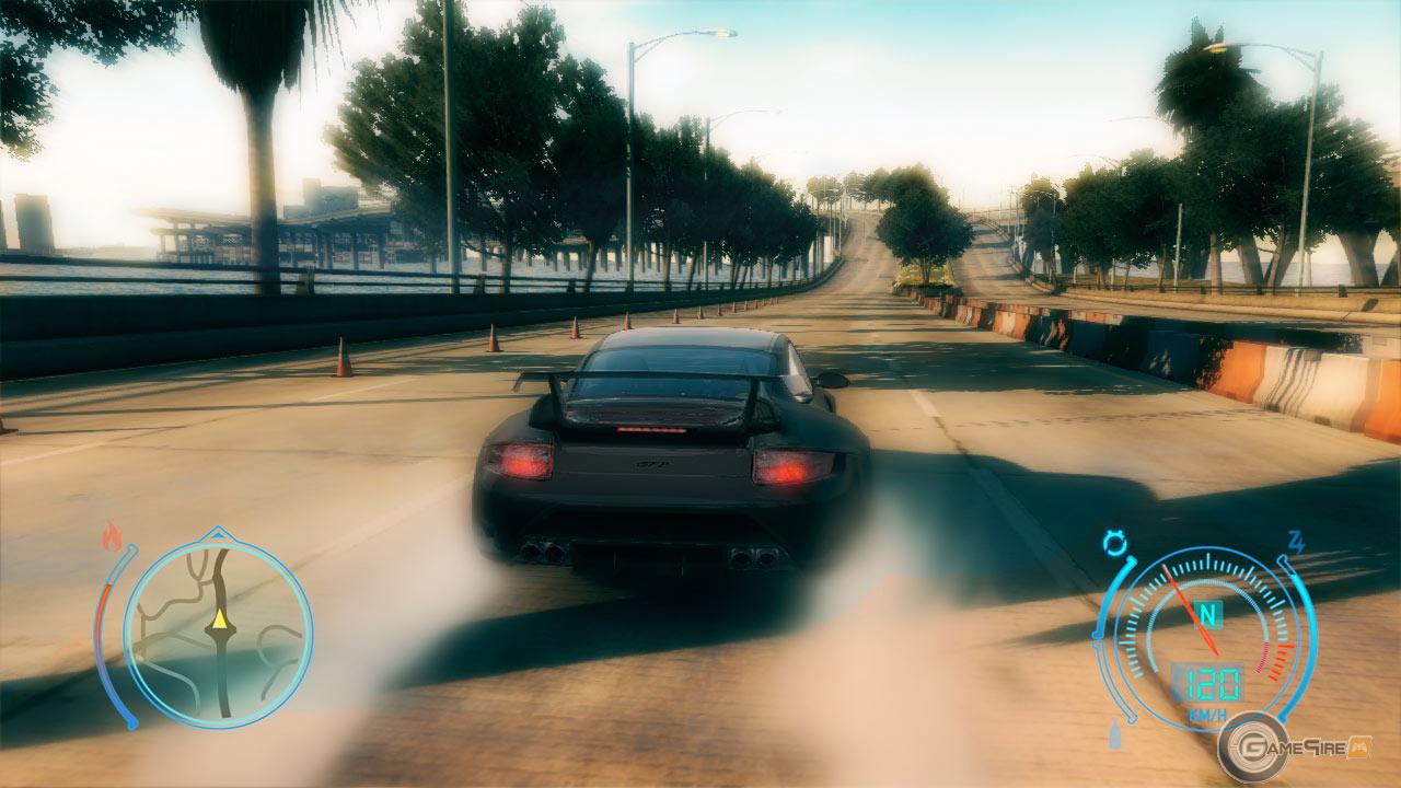Als Schauplatz dient der fast schon tropische Südostzipfel Nordamerikas. Eine komplette Stadt inklusive ländlicher Umgebung direkt am Wasser wirkt wie geschaffen für die neuen Asphalt-Abenteuer. Die Architektur kann sich sehen lassen - das Straßennetz scheint zur Hälfte aus Highways zu bestehen, so dass viel Platz zum Austoben geboten wird. Auf den Straßen selbst herrscht, wie eben schon erwähnt, leider fast gähnende Leere. Fußgänger gibt es keine, nur ab und an beleben ein paar Fahrzeuge den Verkehr. Etwas enger wird es nur bei den Highway-Battles, wenn dutzende von Wagen die Hochgeschwindigkeitsraserei behindern.